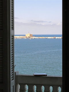 I was alert to these things because the Liquid Continent event at the Bibliotheca Alexandrina was all about Alexandria and the Mediterranean, what the city supposedly shared with other cities round the Mediterranean's shores. Once upon a time the influence did come across that sea; you see it still where the older buildings stand along the Corniche and a few blocks behind, the architecture of the late nineteenth century and early twentieth. But now Alexandria no longer looks out to sea; it is being buried by the Delta mud.